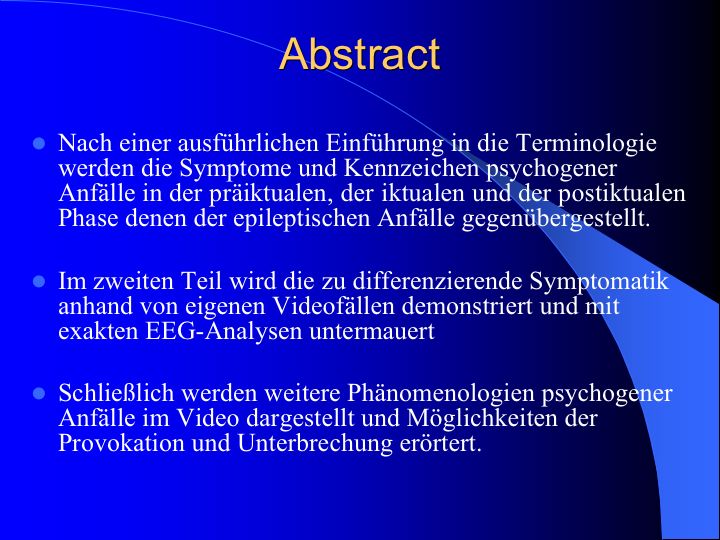 Phänomenologie und Analyse Psychogener Anfälle in EEG und Videometrie